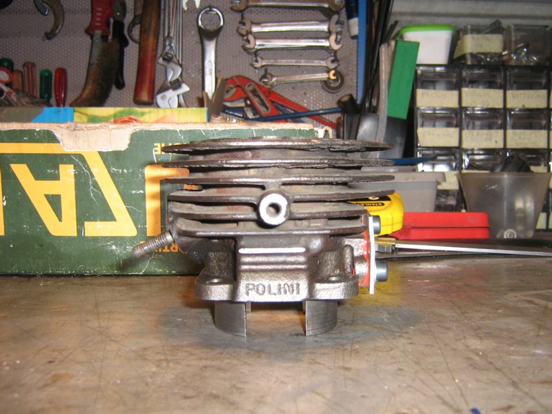ciao a tutti, oggi pomeriggio mi sono recato dal meccanico per chiedergli quanto sarei venuto a spendere per retificare il mio 75 polini! le sue prime parole sono state: "è da quasi 4 anni che non faccio più retificare gt, e adesso ti faccio vedere il perchè!"  dopo due minuti ha tirato fuori il blocchetto dei prezzi, e con mio grande stupore ho letto, che per una retifica, compresa di pistone ci volevano 85 EURO 60 euro di pistone e 25 di retifica! sono rimasto senza parole!  dopo la grande delusione ci siamo messi a parlare del problema che mi si verificava nel vespino (ovvero prende bene il gas fino a metà e poi fa solo più rumore), e secondo lui poteva essere il gt stra consumato, il carburatore troppo grande e il rapporto troppo lungo per un 75cc (io monto una 18/67, e secondo me ha detto una grande cavolata). dopo circa 5 minuti gli è venuto in mente che nella scansia aveva un cilindro per vespa  l' ha tirato giù e in quel momento mi sono quasi emozionato , era un bellissimo 105 polini doppia aspirazione  ma l' imbocco del secondo collettore era stato, chiuso molto bene, eliminando il sesto travaso! vedendomi molto interessato mi ha iniziato a dire: "ti piacerebbe èèèè???" io: si molto  alla mia risposta mi ha detto che se volevo lo potevo comprare ad un prezzo molto basso ovvero 70 euro, compreso di guarnizione e rulliera maggiorata per quello spinotto  garantendomi che il 6 travaso tappato non avrebbe causato nessun danno, e il cilindro sarebbe funzionato come un normale 102cc ci ho pensato per 10 secondi e non sono riuscito a trattenermi!  pensandoci bene i pezzi per far funzionere bene questo cilindro gli avevo tutti perchè sul vespino monto: un 20/20 con collettore diritto proma rapporti 18/67 allungati con gomma 3.50.10 ovvero equivalente ad una primaria 22/67 e frezione del 125 dopo 10 secondi ho accettato l' offerta, e con la mia paghetta mi sono comprato questa bellezza: