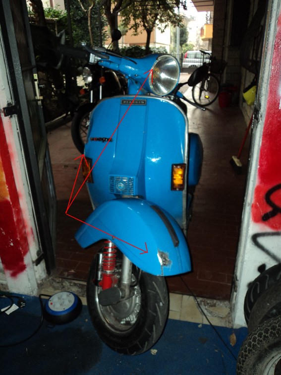 Scherzi a parte.... l'importante è che te non ti sei fatto niente... un giubbino e una visiera si ricomprano.... la vespa si aggiusta (anche se piange il cuore a vederla rovinata....) quello che conta è che te sei tutto intero!!!! |