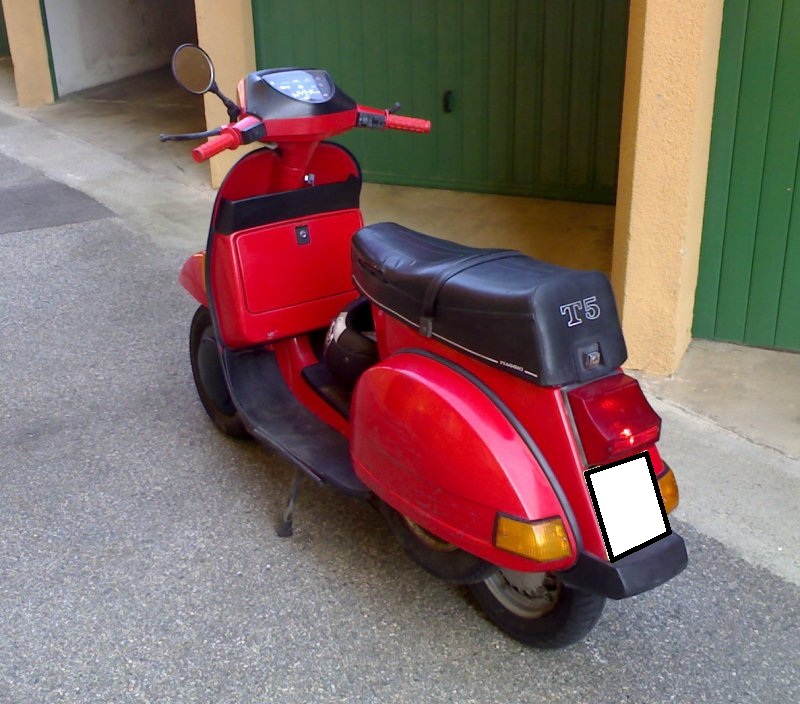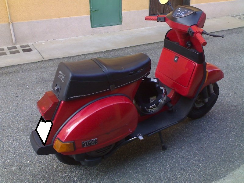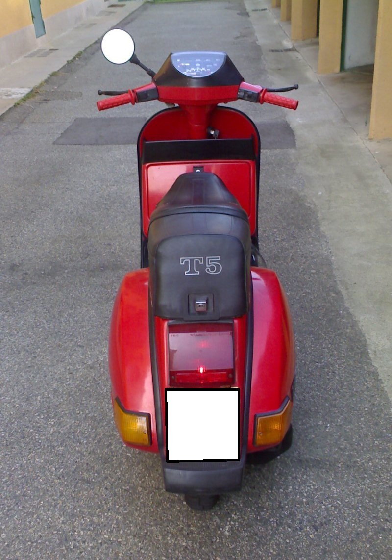 Su Vespatecnica e in rete si legge che il rosso utilizzato per il T5 è il Rosso Corsa con codice maxmeyer 1.298.5806.... informazione completamente errata in quanto, confrontando un campione di vernice fatta in questa tonalità con la vernice originale sulla vespa, si rileva che il Rosso Corsa sopra indicato risulta essere molto molto più chiaro rispetto alla tinta originale della mia vespa.