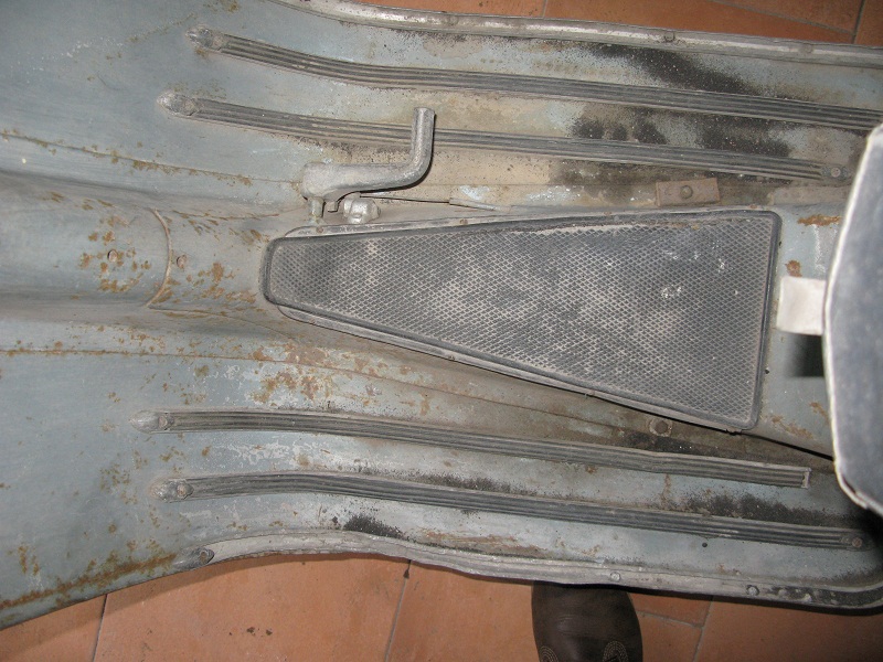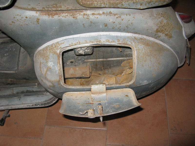 Il cofano sx è fissato con delle viti (tante viti...) infatti essendo il bauletto non è come nel px che necessita di sgancio rapido per estrarre la ruota di scorta... questo è FISSO e lo si smonta solo se si deve smontare la vespa.