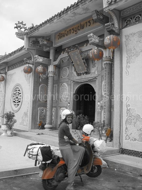 Il ritorno a Bangkok è inevitabile, ma questo significa anche che il generale ce l’ha fatta! Arriviamo , passiamo a salutare la coppia che ha l’officina di vespa, ci fanno mille domande e il meccanico non riesce a credere che la vespa non abbia avuto problemi. Poi, ci invitano a dormire a casa loro, qualcosa ci dice che ci pentiremo, ma accettiamo, la curiosità di sapere quale sara’ il motivo del pentimento è troppo forte………… La “casa” è sopra l’officina e le porte sono le serrande di ferro chiuse con grandi lucchetti, che già mi fanno sentire in trappola, saliamo le piccole scale di legno che portano alle “camere” ce ne sono 2 con in mezzo un piccolo quadrato libero dove per terra stendono una stuoia e ci dicono che possiamo dormire li, e fin qui niente di strano, ci allunghiamo e uno alla volta andiamo di sotto in bagno, tutto è tappezzato da scarafaggi di misura abnorme, sono ovunque, Giulia inizia ad andare in paranoia e un po’ anche io, sono chiuso dentro, non ci sono finestre, si muore di caldo e sudo come mai prima d’ora. Per quanto riguarda gli scarafaggi, ci tranquillizza il pensiero che stiano solo al piano di sotto e che non salgano le scale. Si spengono le luci e io mi addormento mentre dall’altra stanza li sento ridere e parlare ad alta voce di continuo senza smettere mai . Fino a quando non vengo svegliato da Giulia che con un urlo mi dice di alzarmi che siamo pieni di scarafaggi, fa un casino e sbatte sul pavimento di legno, io balzo in piedi, dall’altra stanza, tutto d’un tratto cala il silenzio più totale. Io mi guardo intorno ma non vedo niente e dico a Giulia che forse se li ha immaginati, ma lei insiste dicendo che c’erano, ne aveva uno sul piede e uno era vicinissimo a me, dietro la mia schiena, e inizio a pensare che se ora non c’è più, forse ce l’ho addosso…….. Non faccio in tempo a pensarlo che sento qualcosa che cerca di uscire dai pantaloni, proprio sopra il sedere, lo sento aprirsi un varco tra la carne e i pantaloni, poi sale sulla schiena, senza dire una parola sbatto la maglia senza toglierla e con un tonfo, uno scarafaggio come non ne avevo mai visti prima cade sulle tavole , grasso e intontito si arrampica sul muro! Giulia ride, ma al tempo stesso è terrorizzata dagli scarafaggi, se c’è qualcosa che la mette in crisi, sono proprio quelli. Mi dice di chiamarli e dirgli che andiamo via, digli che è colpa mia , che è una fobia , che non posso farci niente, che mi dispiace, ma dobbiamo andare. Io prendo la palla al balzo anche perché fanno schifo anche a me, così li chiamo, cerco di spiegare tutto e finalmente i lucchetti della serranda si aprono ed è di nuovo libertà…… giriamo fino alle 4 di mattina per kao san road in cerca di una camera. Scopo raggiunto, sappiamo il motivo del pentimento. La mattina dopo prendiamo il Generale, attraversiamo bangkok per rimettero nella cassa che lo riporterà a casa! Questa è la fine del viaggio in Asia,di una vespa 50 special con il cuore fuoristrada! Prima di partire per la route66 il generale era un ferro vecchio, ma per me era un sogno, Poi il sogno diventa realtà e il generale si trasforma in mito Ora dopo più di 6.500 km nelle peggiori strade e in condizioni estreme, per me è diventato leggenda! Ogni giorno ci ha portato fuori dalle situazioni più impensabili e sto seriamente pensando che sia dotato di vita propria, ieri lo abbiamo rimesso nella gabbia che lo riporterà in Italia e già ci manca da paura ….. è troppo forte, non eravamo in2 nel viaggio, ma in 3! Mi ritorna in mente quando borbottava sotto l’acqua mentre ci faceva attraversare i fiumi del Laos, oppure quando faceva ridere tutta la gente dei villaggi facendo girare la ventola all’accensione, oppure quando si incazzava nelle lunghe e infinite salite, alla botta che ha preso nella giungla, che gli ha storto la marmitta impedendo alla ruota di girare, ma due colpi di pietra sono bastati per non farlo arrendere, il Generale non si arrende mai, neanche con la benzina più sporca del mondo e con l’olio per la miscela alla fragola, tira e tira ancora è la mia leggenda e pensare che ci sarà anche lui a casa mi rende il ritorno meno duro! È stato un viaggio avventuroso e una continua scoperta e non ci importa niente se non siamo potuti entrare ne in Vietnam, ne in Myanmar……. L’importante è riuscire ad andare non la meta! Anche se la maggior parte del viaggio è stato veramente duro, dietro ad ogni curva si nascondevano 100 motivi per continuare ad andare e che ripagavano di tutto. Prendere una strada di terra nella giungla senza sapere quanti fiumi ci saranno, o dove dormiremo e cosa mangeremo è qualcosa di talmente bello che mi toglie il respiro dalla gioia al solo ricordo.Gia’ mi manca! E ringrazio Dio per aver dato retta ai miei sogni , perché così come la sconfitta non è non entrare in Vietnam o in Myanmar, ma non provarci per niente, l’unico modo per non far avverare un sogno è pensare che sia impossibile. Voglio continuare a sognare e buttarmi nella mischia e ogni volta mi rendo conto di quanto sia bello e possibile farlo, anche se sabato ritorniamo in Italia e non ho la minima idea di quello che farò e non ho più un soldo, così come è stato per la 66 , ma qualcosa succede sempre, il fatto di non sapere cosa farò, non significa che non succederà o non troverò qualcosa per andare avanti, non ho niente di fisso, mai l’ho avuto e mai lo vorrò. È impossibile perdersi se non si ha una meta. Potrei continuare a scrivere per ore stanotte, l’aria è calda e carica di umidità, migliaia di grilli stanno cantando qua fuori e in lontananza si sentono le note di una triste canzone Thai, ma che viaggio fantastico è stato, quanti mondi ci sono qua fuori e voglio vederli tutti prima che tutto venga distrutto… Mi manca il Generale, e quando ho tirato l’ultimo bullone della gabbia, mi ha chiamato vicino a se, ho appoggiato l’orecchio sulla carrozzeria sporc