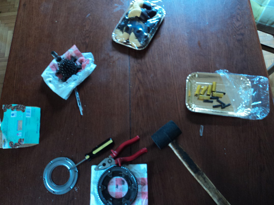 I lavori procedono.... lentamente..... Oggi vado a prendere i ribattini del parastrappi, si incomincia a rimontarlo, poi l'albero secondario, poi l'albero motore, poi la frizza, poi i prigionieri, pistone, ingranaggio d'avviamento e si chiudeeeee