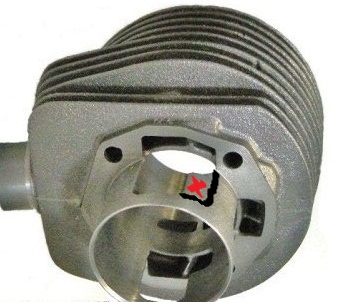 vorrei chiedere se e possibile asportare del materiale sulla camicia del polini? perche mi chiedevo,visto che i carter sono stati raccordati al gt,che quella elle non va ad ostacolare il flusso della benza,o sbaglio? in rosso e il materiale che vorrei asportare in questione.