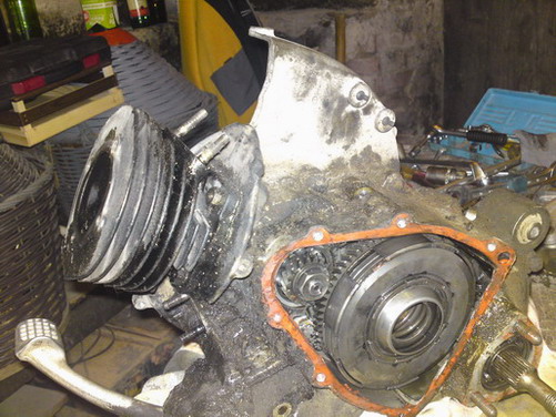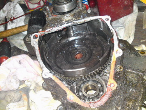 poi....l ingranaggio della frizione....altro dubbio....ma come ca....o si toglie?si sfila solo in parte dal cuscinetto e non esce perche batte nella parte posteriore del carter...ma per caso bisogna forare i 4 rivetti che tengono il portafrizone sull ingranaggio e poi toglierlo?