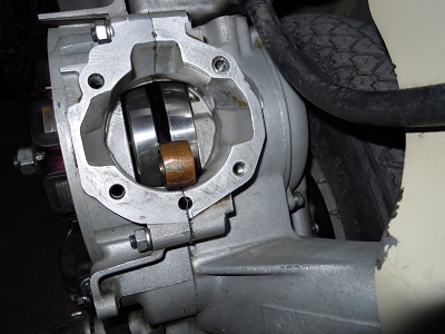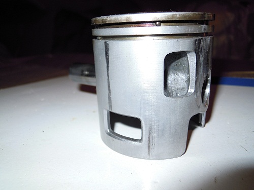 allineando il pistone alla apertura totale dello scarico,si trovano allineati con apertura totale i travasi laterali,mentre quelli del fronte scarico no,rimangono leggermente chiusi. mentre se allineo all'apertura totale il pistone con i travasi del fronte scarico,si trovano piu alti i travasi laterali e scarico di 3 mm dal pistone.