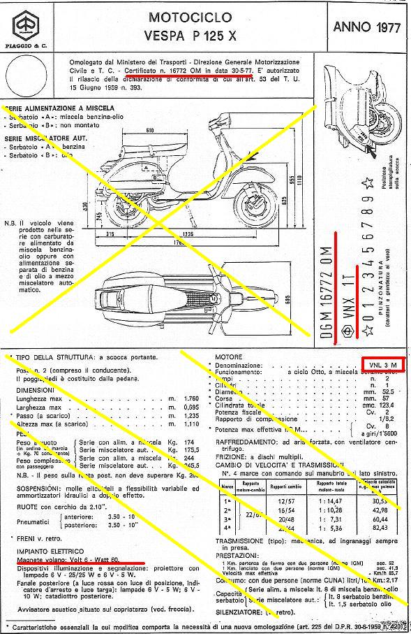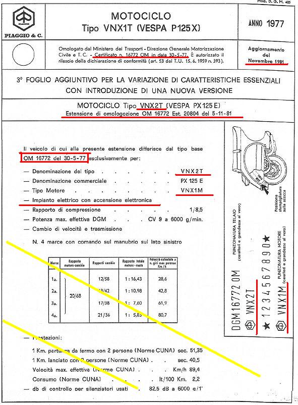 comunque per correttezza, il motore montato sul px125 è VNL3M; diventa VNX1M a partire dal 5 novembre 1981 e tale rimane fino a fine produzione del PX 125.