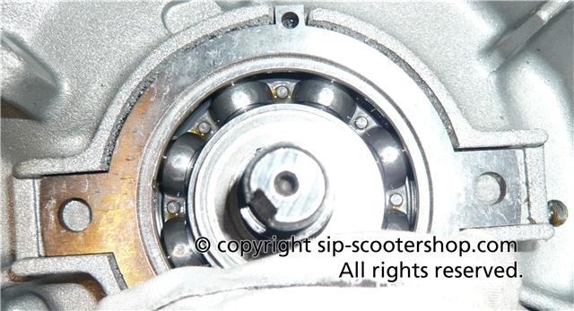 e bravo vitto! Mi pare in alcuni px sia così di norma il bloccaggio del cuscinetto, ed ha dato l'ispirazione ai meccanici per risolvere problemi in caso sede seeger rovinata (a me ad esempio fu fatto artigianalmente nel mio primo motore small) quindi non so se sia normale in quel motore o artigianale, ad ogni modo funziona.