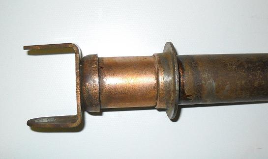 Dal momento che di ammortizzatori ne ho due, ho pulito questo più a fondo e scopro che la ramatura non è presente solo nelle giunzioni dei pezzi a mo di saldatura ma ricopre anche completamente la parte inferiore. Ma quando uscivano di fabbrica si vedeva tutto questo rame? Mi sorge il dubbio che fossero tutti neri, fosfatati o bruniti non so e che solo con il passare del tempo perdendo lo strato di brunitura/fosfatazione riaffiori qua e la il rame sottostante che da nuovo non si vedeva, ma è solo una mia supposizione.