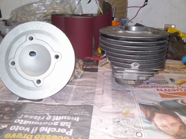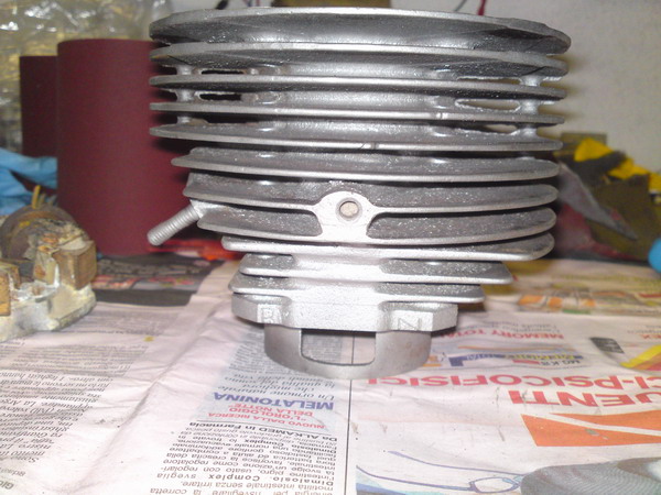Allora ecco qui due belle foto del cilindro pulito e sabbiato(e anche rialesato a 55.8) con testa annessa.