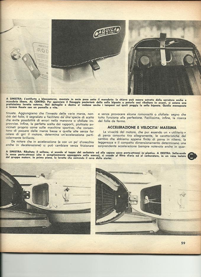 Come promesso ecco il servizio di motociclismo del 65. Comunque secondo me,anche la storia della sella corta e lunga come optional è una gran caxxzta,forse è vero il contario,altrimenti non si spiega il perchè di questo servizio e dei volantini.