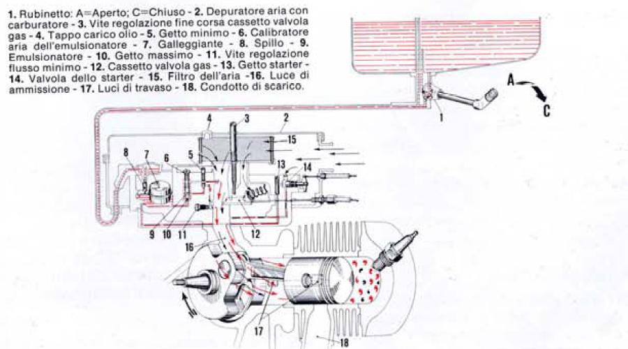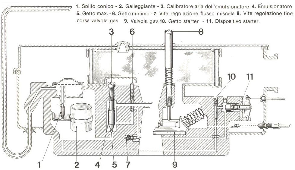 allora diciamo le cose come stanno sul px la vite riduce il passaggio miscela e si cjhiama anche vite miscela.. sull SI si riduce la portata miscela avvitando.. provate per favore e controllate ditemi se sale di giri avvitando o svitando e cmq appena lo trovo vi posto lo schema....... siamo alle solite