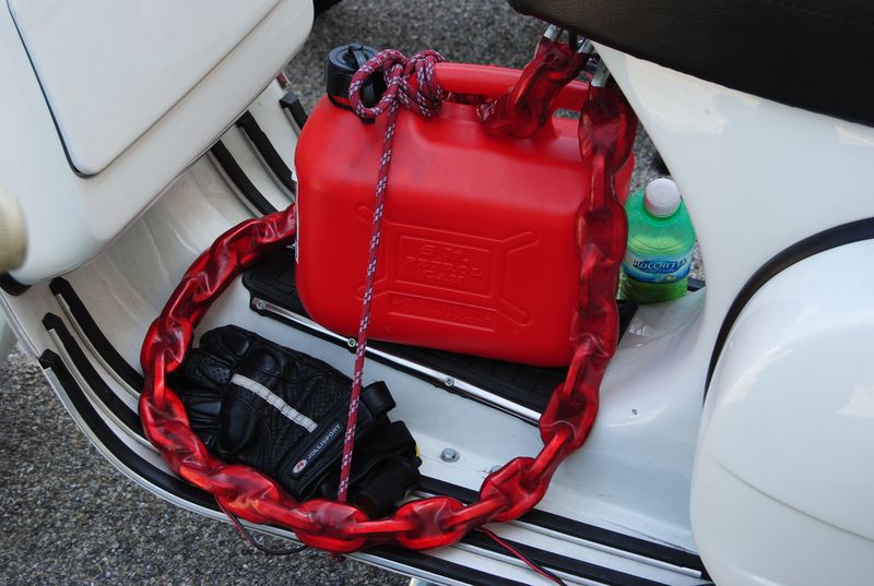 Fravespa l'aveva promesso..."..mi porto la tanica di scorta", e così ha fatto. Solo un piccolo particolare.... non si fidava molto di noi, conoscendoci come persone simpaticamente pericolose e molto scherzose. E allora si è premunito......