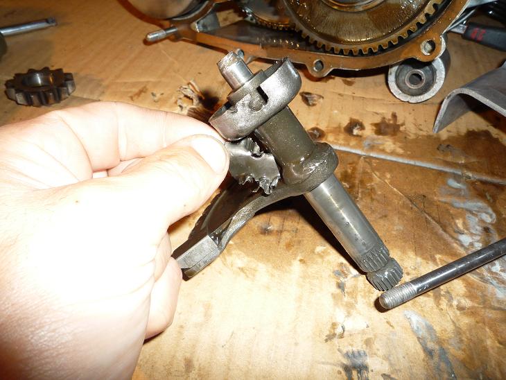 Ciao a tutti partecipanti !! Anche oggi ne ho una nuova tanto per cambiare... Ieri ho aperto il motore per cambiare la frizione e il parastrappi. All'apertura del carter mi trovo il pezzo misterioso incastrato nel settore avviamento (se cos'í si chiama) , per intendersi l'ingranaggio a forma di ventaglio al quale viene fissata la pedivella ! Posto la foto:
