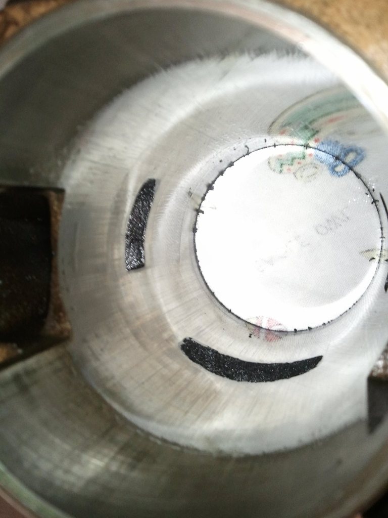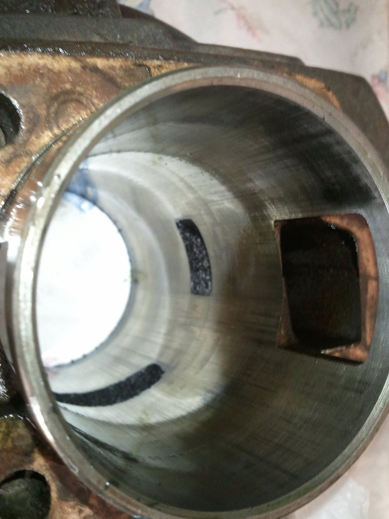 | Secondo me è semplicemente troppo sporco, quelli sono residui carboniosi, sembrerebbe che anche le luci di travaso e lo scarico ne siano pieni, probabilmente quel motore ha girato sempre con olio molto scadente, sicuramente non sintetico. |