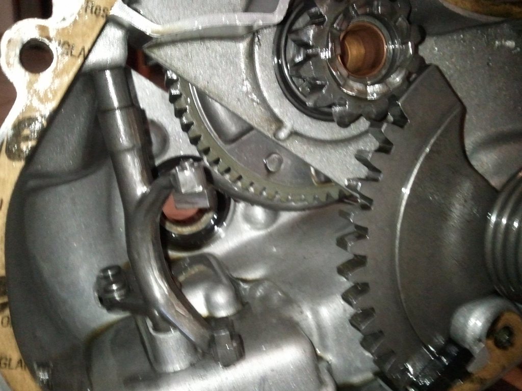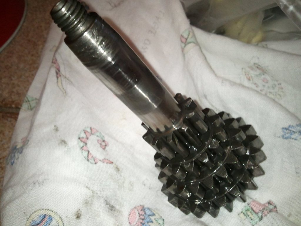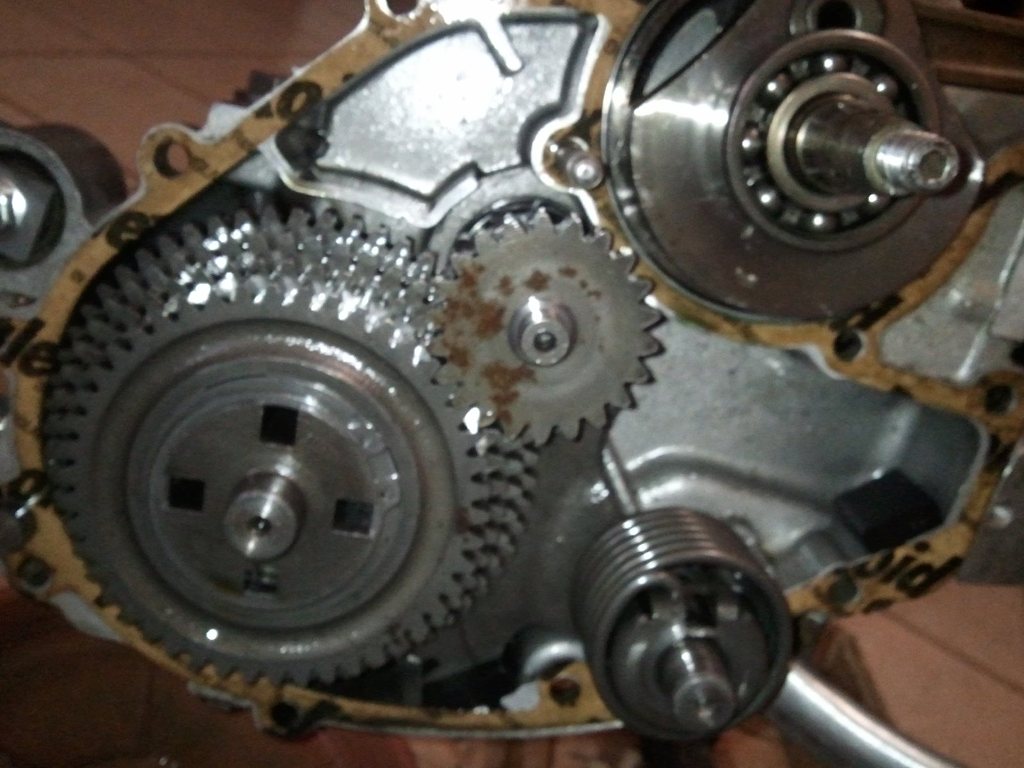 | dalle foto sembra che la crocera sia finita, l'ingranaggio messa in moto anche, poi devi controllare il numero di denti della campana, l'albero è un primavera, secondo me è un blocco primavera, mah.. comunque conta i denti del pignone e della campana, controlla le battue degli ingranaggi delle marce, controlla la valvola che in foto non si vede e la spalla dell'albero.. |