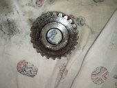 ok, sotto foto di campana e pignone: dovrebbero essere 60 e 24 denti rispettivamente se non ho contato male