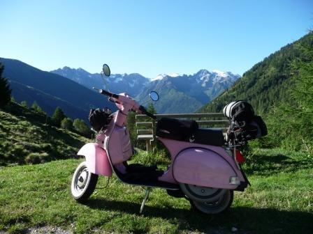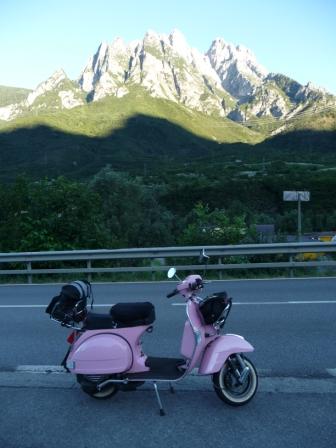 Poi dal Bernina giu' verso Poschiavo...i panorami sono incantevoli, ma si sta facendo tardi. Un pezzo della vallata da Tirano verso Sondrio e poi risaliamo all'Aprica. In confronto ai passi fatti precedentemente coi suoi 1200 metri e' una collinetta: Poi giu' verso Edolo. QUi saluto l'amico Vespista che risale verso Vezza d'Oglio in cerca di un campeggio e io torno verso casa, felice come un bambino e per niente stanco.