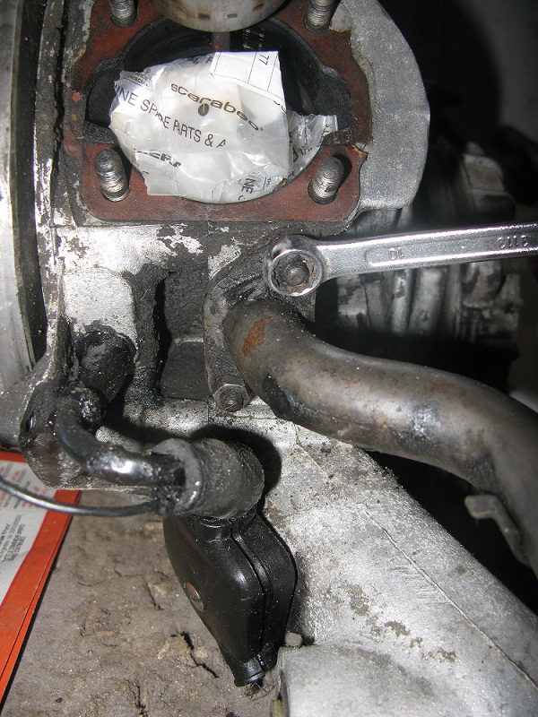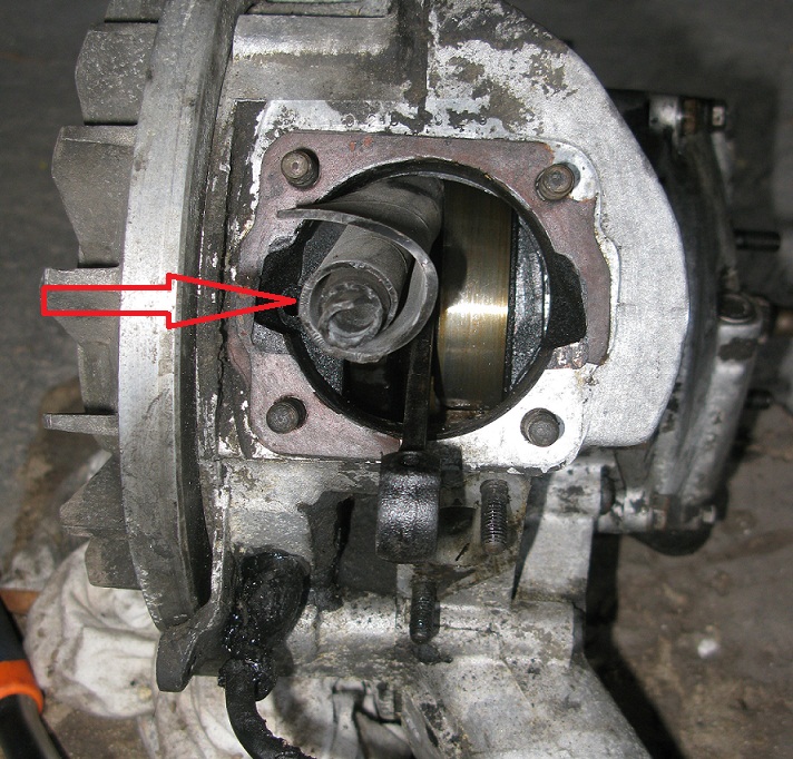 Iniziamo con molta calma questa nuova impresa. anche perchè il tempo è davvero poco Oggi ho smontato i primi pezzi dal carter: Per prima cosa ho smontato il bocchettone. per smontarlo bisogna togliere l'anello elastico evidenziato con la freccia rossa.