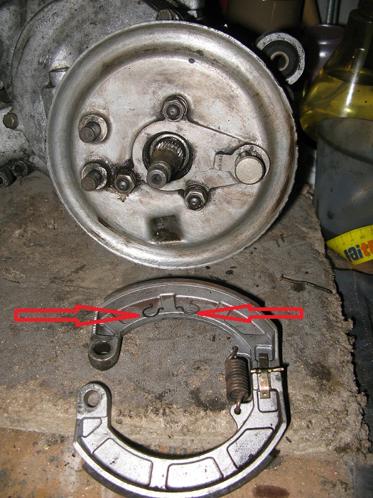 Ciao ragazzi, stamattina avendo un pò di tempo ho fatto qualche piccolo passo. Ho smontato le ganasce togliendo i due piccoli anelli elastici evidenziati dalla freccia: