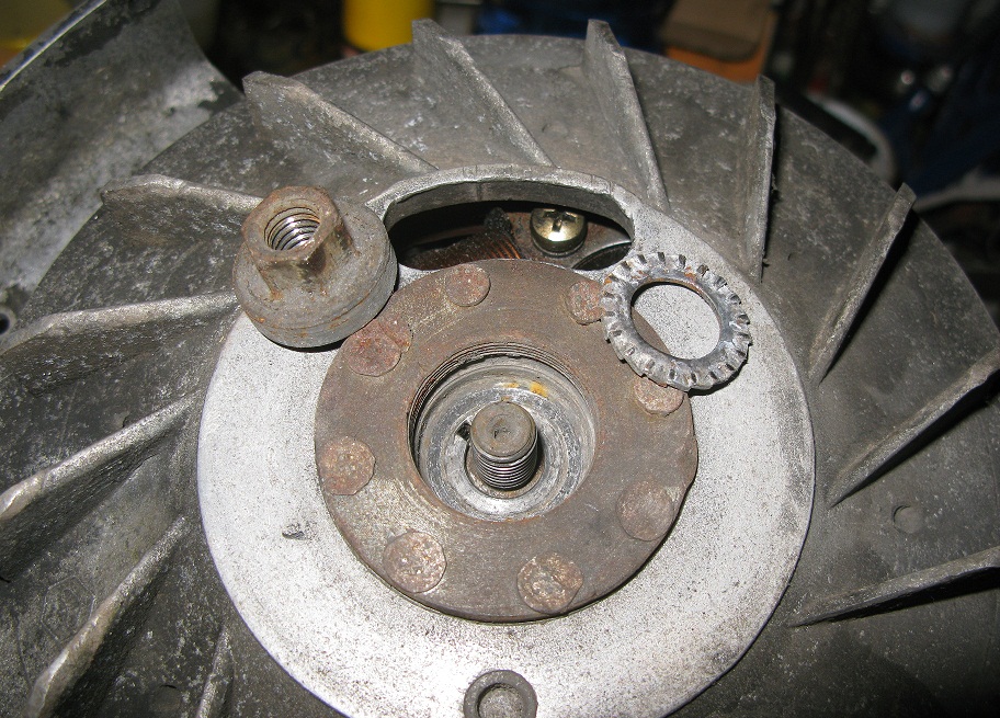 Se il volano ha la filettatura per l'estrattore, allora quel dado non ci va... Quel dado ha quella forma per sfruttare il seeger Lo statore mi sembra un pò anticipato |