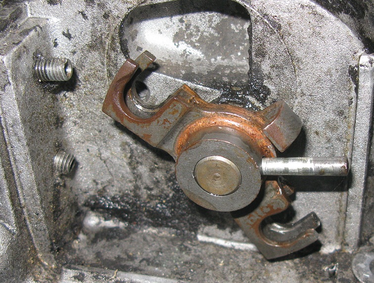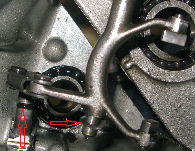 Rieccomi tra voi, smontaggio forcella comando marce: Per smontare la forcella, bisogna togliere dal selettore che sta sotto il carter, la spina conica, usando un cacciaspine e facendo attenzione a non dare colpi violenti: