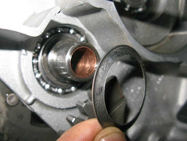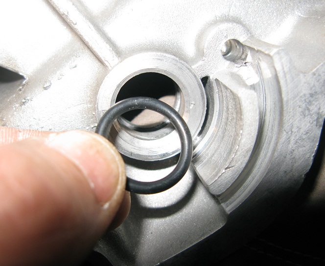 Rieccomi tra voi. Una volta inseriti i cuscinetti nel carter lato frizione, per prima cosa ho sostituito l'oring della forcella comando marce: