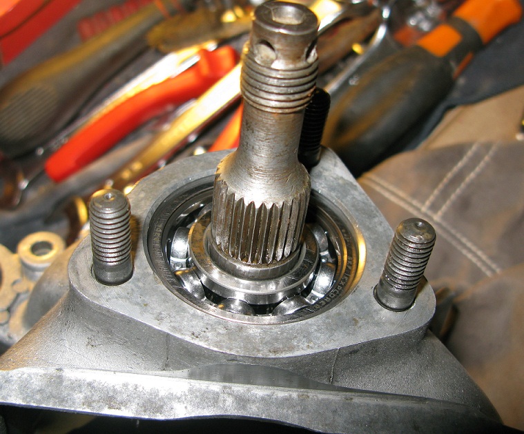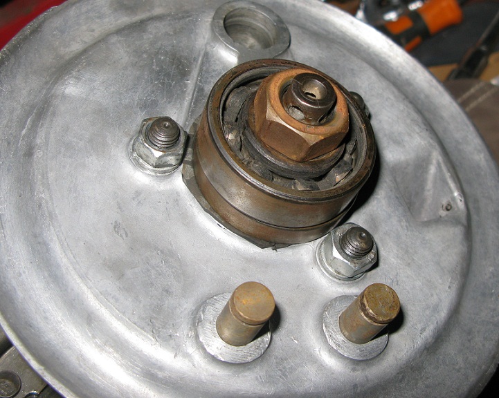 Adesso cominciamo ad avvitare il bullone, quest'azione trascinerà l'albero dentro la sede del cuscinetto. Ogni tanto bisognerà aumentare l'altezza con qualche altra rondella fino a quando l'albero non sarà entrato del tutto nella sede del cuscinetto.