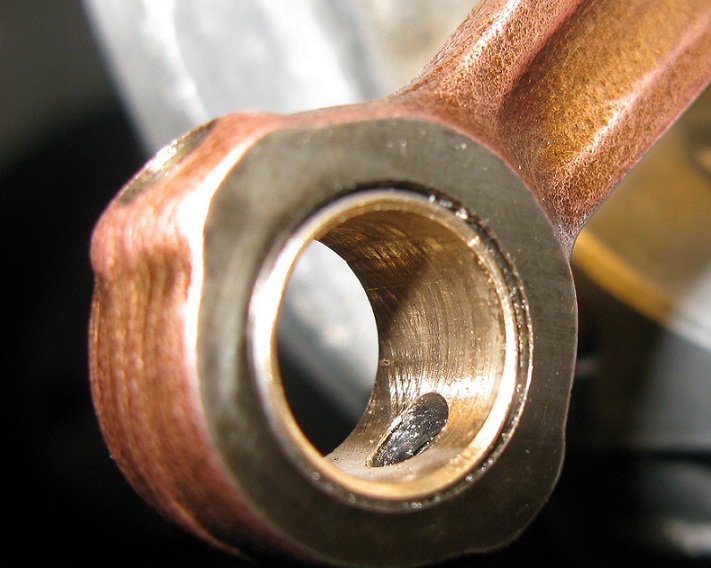 Salve ragazzi, dopo qualche giorno di pausa, e qualche problemino risolto vi aggiorno Prima di Natale, ho avuto il piacere di conoscere Salvo VB1 andando nella sua officina, si è dimostrato davvero in gamba e soprattutto molto disponibile quindi mi sembra giusto ringraziarlo ancora una volta....... Prima di chiudere il carter ho voluto fargli vedere il motore. Ha controllato il gioco del cambio con gli spessori ed il gioco è risultato di 0,35. Poi si è anche accorto che la bronzina della biella aveva un gioco anomalo A questo punto ho acquistato un anello di spessore maggiorato riducendo il gioco del cambio a 0,2 mm. Infine ho dovuto portare in rettifica l'albero motore per far cambiare la bronzina e farla alesare. Ecco la bronzina: