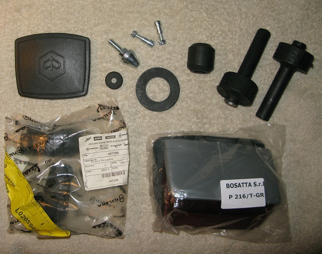 165,9 KB silent blok, coperchio contachilometri, viti manopole, guarnizione tappo serbatoio, pomello chiusura sella, guarnizione asta rubinetto benzina,scarpette per cavalletto,ed infine il faro completo Bosatta. Un saluto |