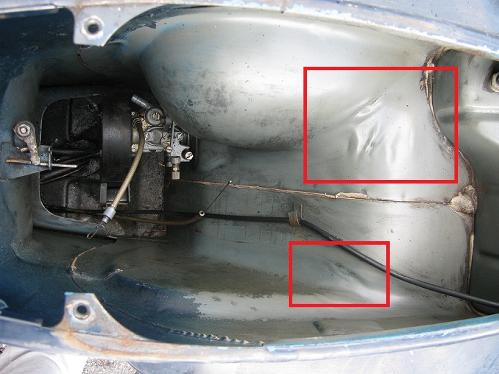 166,58 KB questo è il carburatore che ho trovato in pratica un dell'orto 16/10 credo originale. Adesso una domanda che mi impensierisce: ho dato una pulita al vano e mi sono accorto di alcune grinze sul telaio, ho controllato di sotto pensando fosse ammaccato ma è tutto normale. Sapete darmi una spiegazione? Ecco la foto: