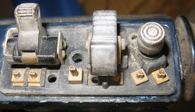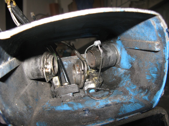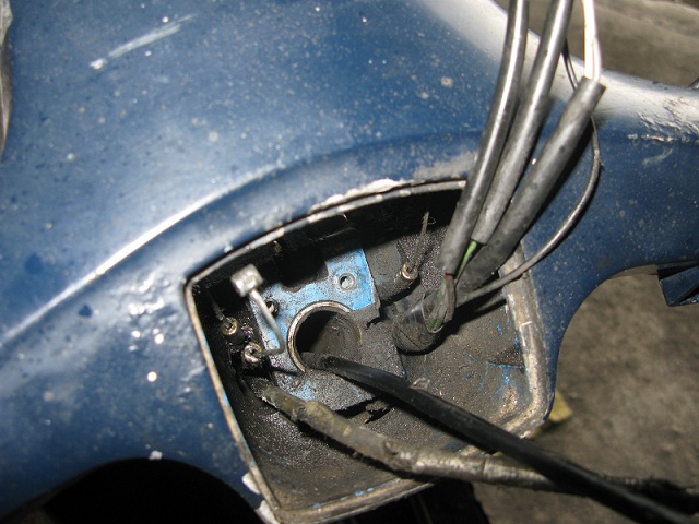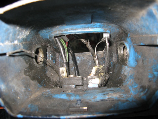 100,88 KB questa è la parte posteriore, in questa foto potete notare i contatti dei fili. Come saprete, i fili sono un tutt'uno con il devioluci nel senso che i fili sono saldati con stagno nei morsetti del devioluci stesso. I fili nero viola e marrone sono collegati direttamente alla parabola del faro anteriore invece i restanti fili verde, bianco e rosso si uniscono con dei morsetti ai fili che provengono dalla parte destra del canotto di sterzo.