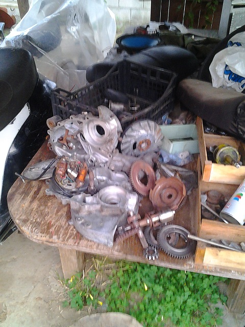 Come hai potuto notare ho gia pulito i pezzi, mi mancano da fare l'ingranaggio dell'avviamento e qualche altra cosetta. Se vuoi altre foto o info dimmelo! I carter sono lavorati, mi sembra di avertelo gia detto  |