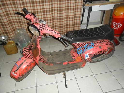 Nel serbatoio ristagnava benzina rossa... fai tu gli anni che era ferma. E' bastato dare una lavata al serbatoio, pulita al carburatore, cambio candela ed è partita subito.. micidiale davvero.. il motore, come scrivevo, non è originale ma è preparato, e preparato bene perchè gira da far paura.. quindi la "truzzeria" non si è fermata agli adesivi delle discoteche bresciane sulla carrozzeria. Complimenti perchè abbinare l'arte dell'officina all'arte soave della poesia è un dono veramente particolare... ma questa è un'altra storia.