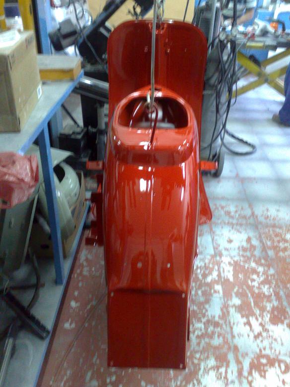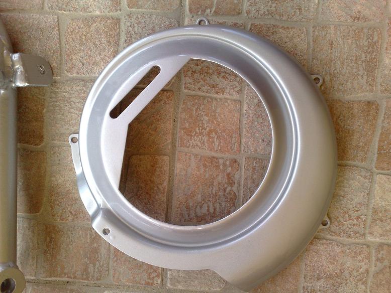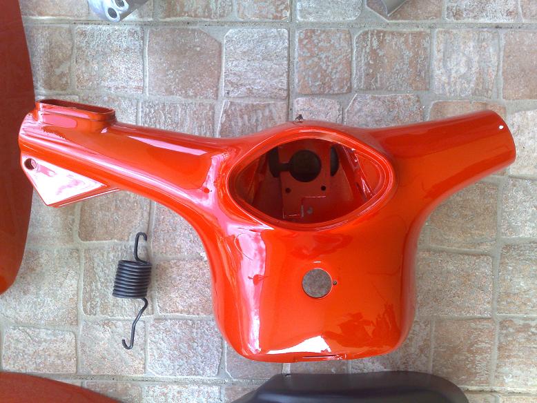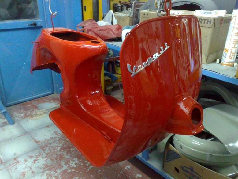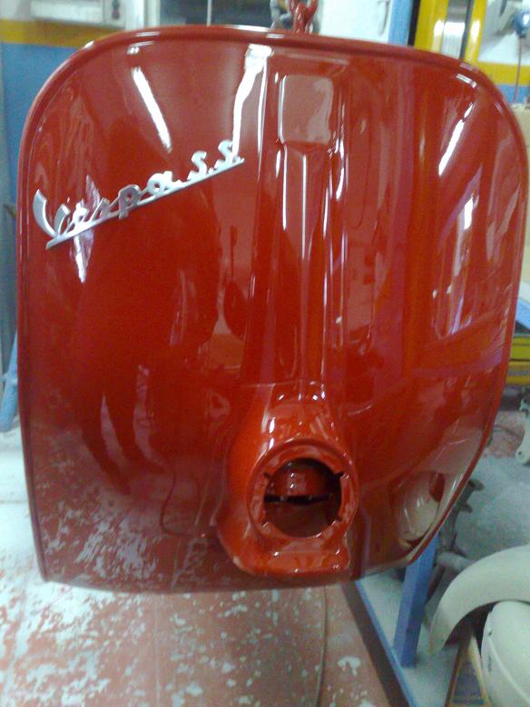 @sanrem la vespa dopo che ha finito con i lavori di carrozzeria la risabbia leggermente e poi la vernicia,appunto per non appesantirla di stucco(o almeno cosi mi ha detto!!!) il foro sulla pedana non va fatto!!! |