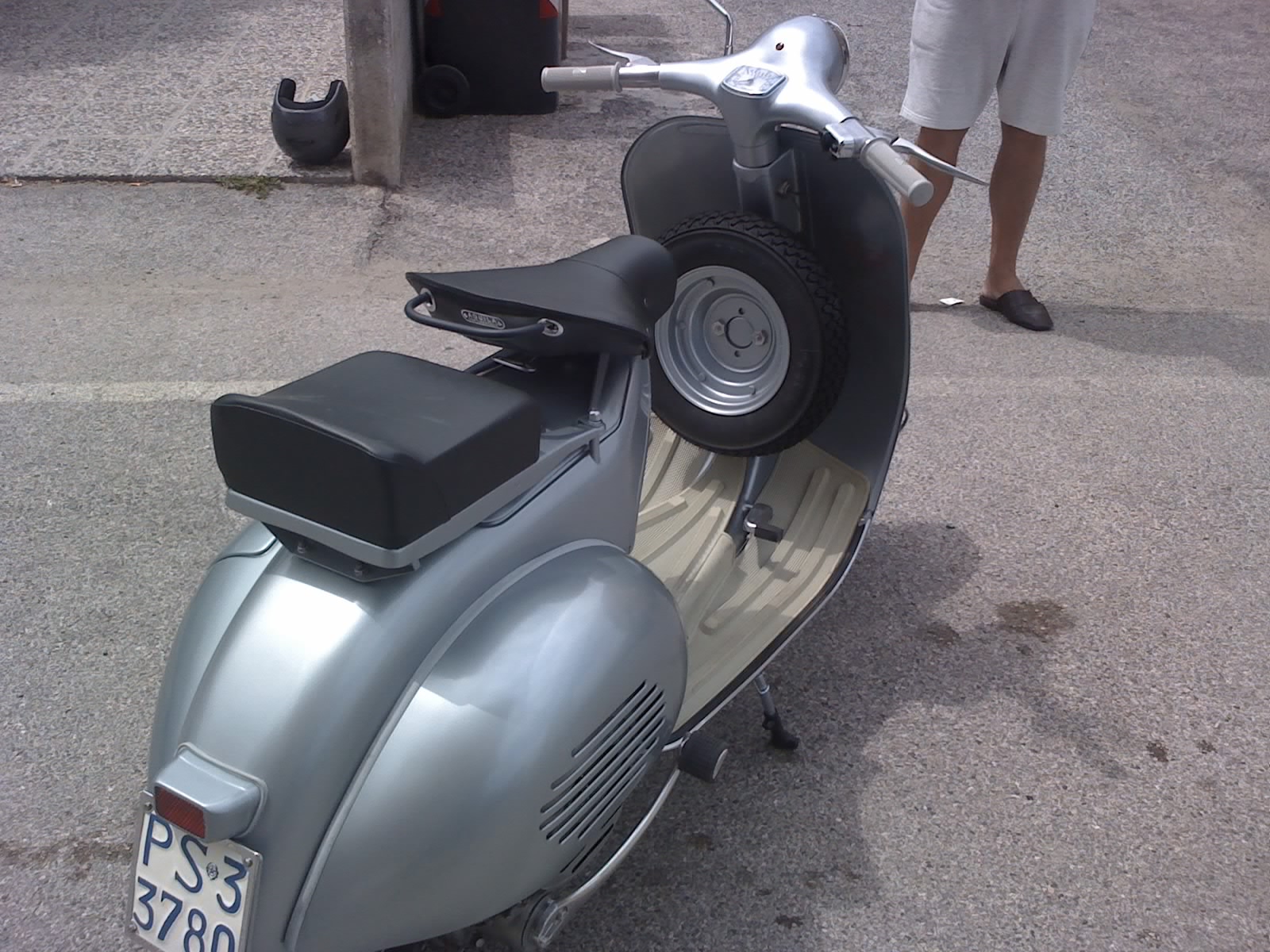 Ok,percorsi in 2 giorni circa 110 km,sano e salvo. Adesso frena gia meglio,ci ho fatto un po la mano e devo dire che è simpatica da guidare...oltre al fatto che tutti la guardano e un paio con vespe piu recenti mi hanno suonato e salutato e cio lo definirei "Vespa-Power"....ahahah Ho anche regolato il gas che era un po' lento e adesso va benissimo. Domattina revisione in motorizzazione,purtroppo è prevista un po di pioggia ma ,ahime,ci devo andare,si sporchera un pochino. |