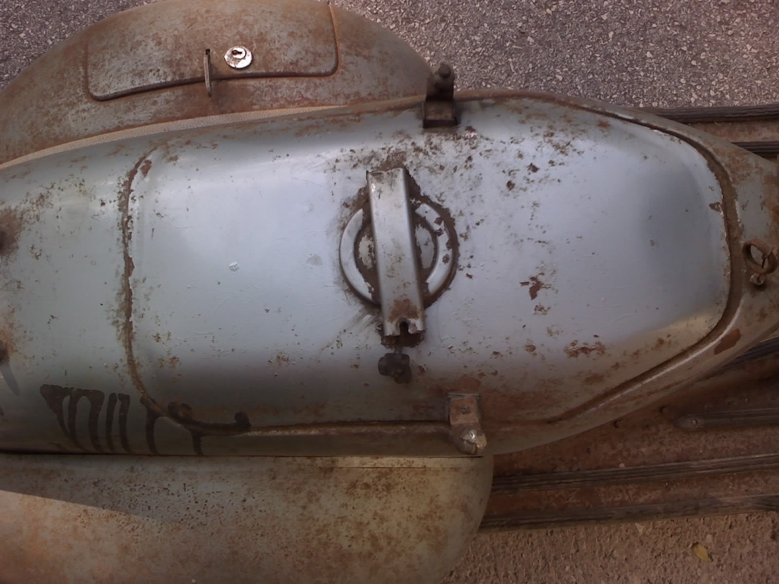 Ho dato una prima bella pulita col cif e poi nei punti coperti dalla ruggine ho sfregato con la spugna metallica ed è venuta via un sacco di roba. Nel sottosella c'è proprio la vernice lucida originale ma in tanti punti è bella rovinata,c'è una patina di ruggine che forse lavorandoci viene via ma in certi punti ci sono proprio tante piccole scrostature che non so se si possano trattare.Poi la pedana è messa male.