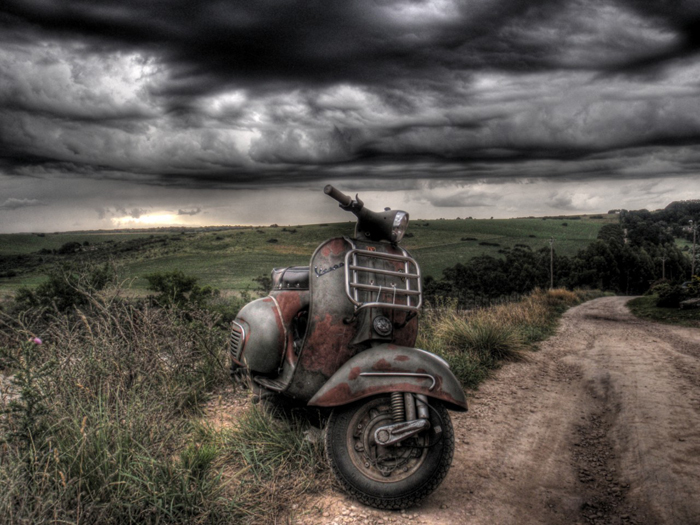 Visto che mi citi ti ribadisco il concetto, sviscerandolo, evidentemente non mi sono espresso bene. In un contesto ampio come il vespismo esistono diversi stili e correnti. C'è chi fa la vespa a puà, chi la restaura all'originale, chi gli sega brutalmente gli scudi e ne fa una vespa da corsa, chi la riempie di specchietti o chi fa cromare anche il telaio. Tutti questi stili possono piacere o meno ma sono gusti. Per quanto mi riguarda non ho mai detto "fanne un conservato" in quanto ritengo la parola "conservato" piena di equivoci, come ho spiegato. Ho esortato a tentare di rendere il veicolo stabile dal punto di vista strutturale, meccanico e della sicurezza (e se davvero sei un carrozziere tu sai che questo è possibile) ma di non procedere alla riverniciatura del telaio, apportando solo qualche minimo ritocco estetico in modo che il veicolo potesse assumere un vago aspetto vintage o rat-rod, la corrente nata in germania dall'hot-rod. In questa foto se ne vede una anni luce piu' invecchiata di quella in questione...