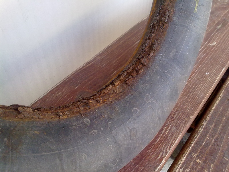 Particolare della vecchia camera d'aria con pezzi di ruggine che si sono staccati dal vecchio cerchio che ahimè ho dovuto gettare: