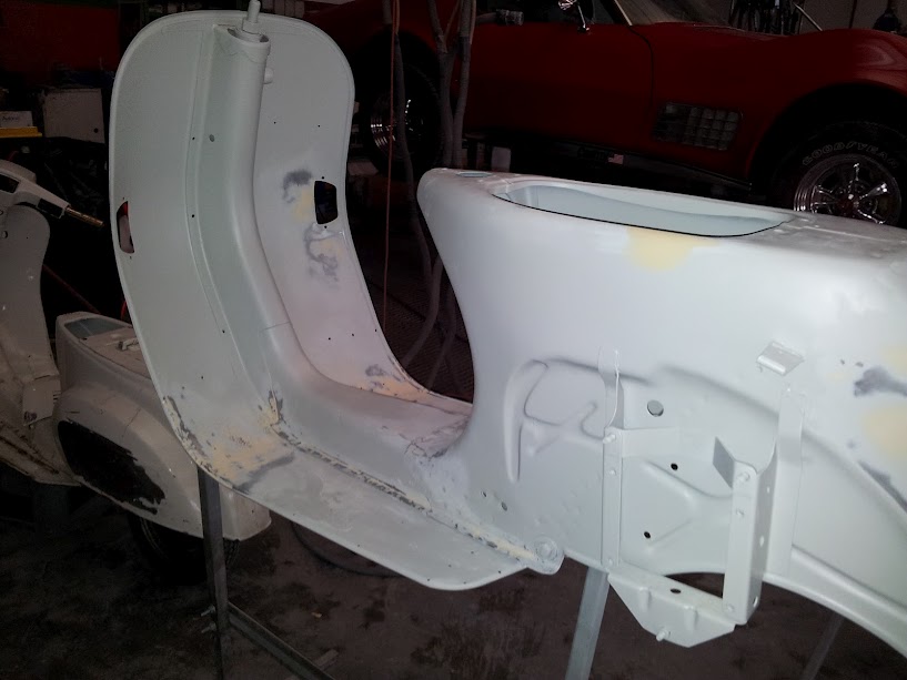 Ecco qualche foto della vespa sverniciata ad acqua, il carrozziere mi ha detto che in questo modo la lamiera mantiene la sua fosfatizzazione, non chiedetemi cosa vuol dire