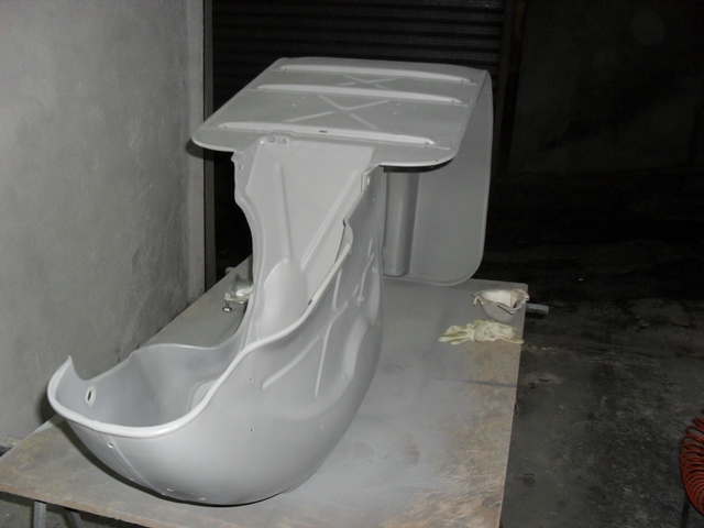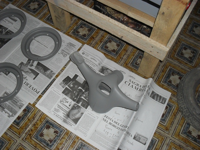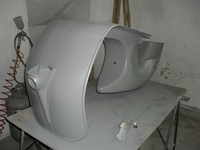 riecchime........finalmente ho iniziato a verniciare la vespa.Sabato pomeriggio ho iniziato con l'antirugune "monoprimer" della leicher.Ieri ed oggi dopo il lavoro ho dato un passatina di cartavetrata 420 per togliere le imperfezioni che si sono evidenziate.Sabato salvo imprevisti dovrei passare il fondo bicomponente.