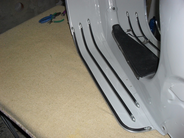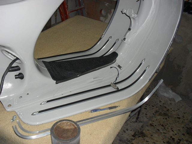 ottimo lavoro. allora il cavallettozincato e il clacscon come ha detto alevespa50. io ho messo prima l'impianto e poi le guaine e fili se non erro.. ciao |
