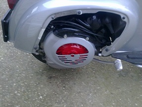 Non piace neanche a me. Il volano rosso sta bene se anche il resto è "tamarrato" cosi è come un pugno in un occhio... sempre come la penso io, se a te piace ok! Piuttosto metti la cornice cromata sul faro anteriore (la sua) guadagna 1000 punti!