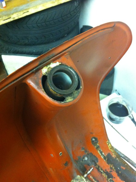 Dimenticavo la dritta del secolo.. ricordati di infilare due cilindri di cartone sia dove và la ghiera inferiore che superiore, infilali anche nei fori del manubrio dove avevi i tubi comando gas e marce, o quando rimonti niente scorre più bene se vi si deposita la vernice! idem per la sede ghiera del cuscinetto inferiore sulla forcella.