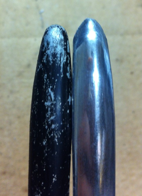 Quanto ai carter, direi che il lavoro è stato eseguito a regola d'arte... ottimo! Ora viene il lavoro sporco, ma che ti darà soddisfazione: paglietta fine e tanto Svitol, per togliere tutto lo sporco e soprattutto la patina d'ossido dei tuoi carter. Verranno bene, vedrai: lisci, semilucidi, un poco scuri così come devono essere, immensamente superiori a qualsiasi carter aggredito volgarmente con chili di sabbia. Buon lavoro!  |