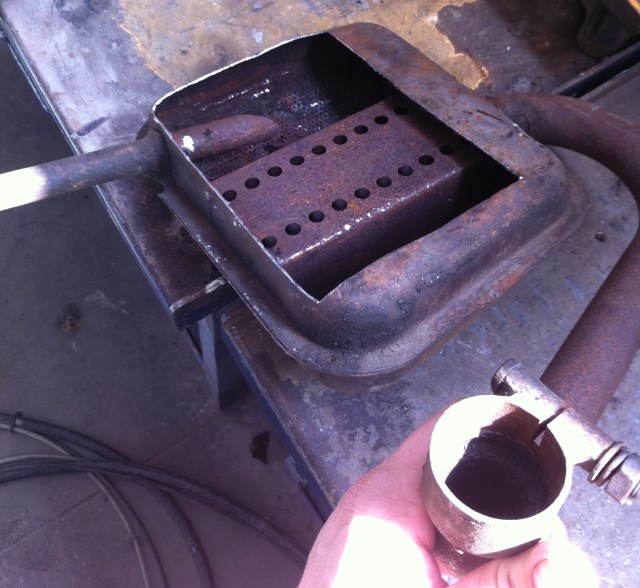 eccoci dunque con la marmitaa, invece di dare fuoco , soda caustica o altri metodi ho optato per aprire una finestra, visto che pesava due chii in più grazie alla merda che c'era dentro