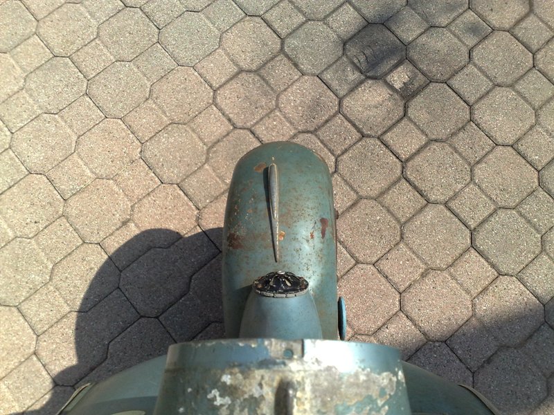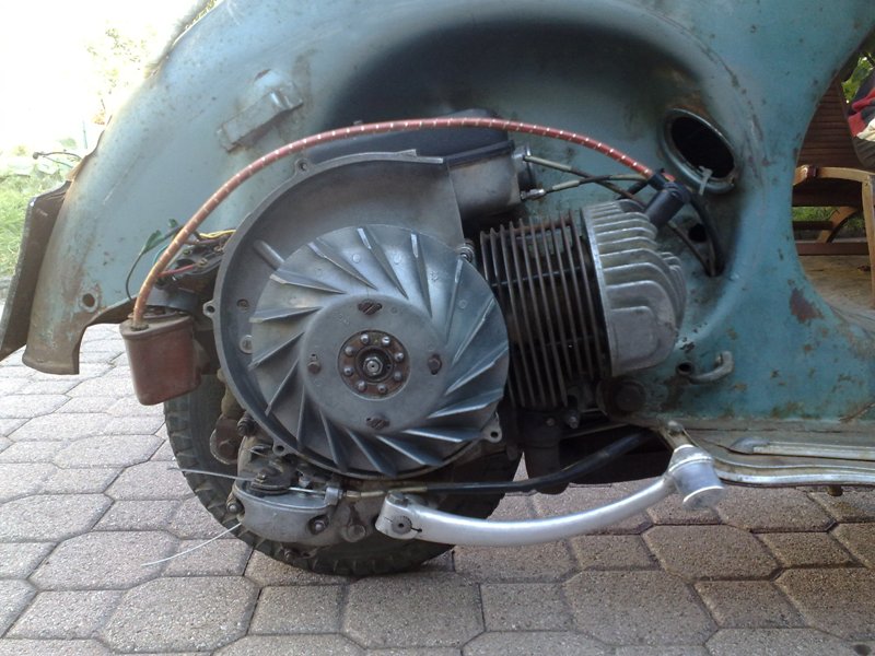 il motore era già stato acceso sul cavalletto, ma era ormai da chissà quanti anni che la vespa non girava sulle proprie ruote! oggi regolati i vari cavi e via! miscela al 3% con olio "BARDAHL VBA SYNT!" si chiama proprio così!