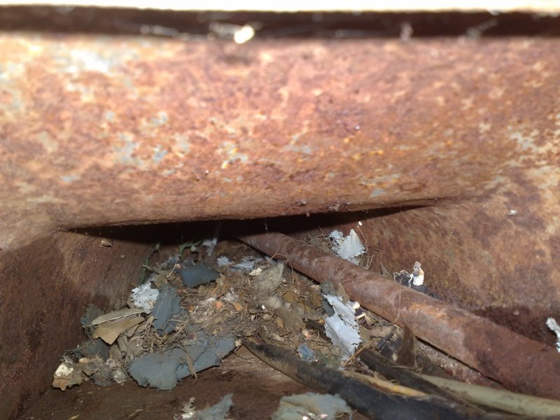 qui sono riuscito a fotografare col cellulare i "meandri oscuri" del pozzetto...pezzetti di giornale! sembra un nido! prima sono andato pure con l'aspirapolvere! e dentro c'è ne ancora! comunque è la ruggine che preoccupa! Immagine: