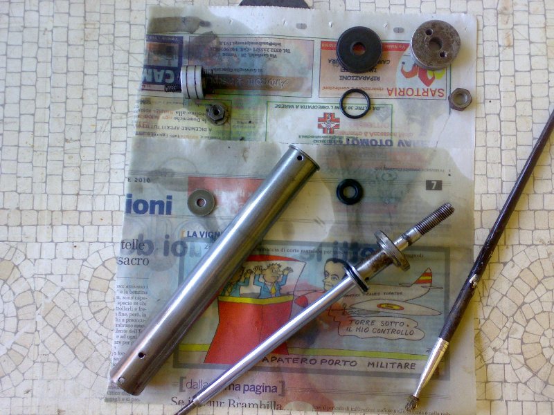 ora posso iniziare a montare la forcella, ed ecco il primo dubbio: mi sono dimenticato come un asino, di togliere il supporto della molla (quel coso d'ottone )...come si toglie? così gli cambio i rullini e l'o-ring!