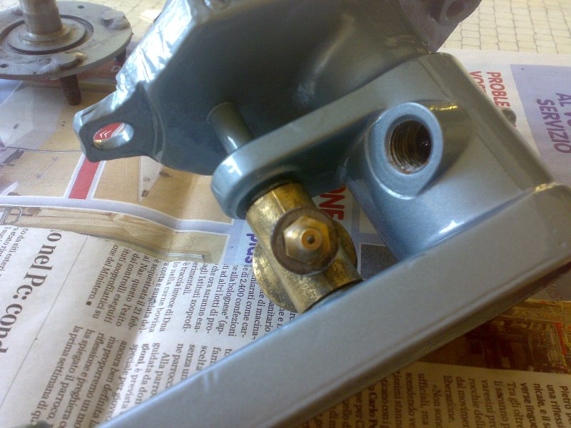il pezzo di ottone lo vorrei smontare perchè ho notato che traballa un pò! e potrebbe mancare un rullino! pazienza se rovino la vernice: poi gli rifaccio un ritocco col pennello, e andrà più che bene visto che è una parte nascosta! ecco cosa succede a fare le cose "di fretta" bisogna pensare 2 volte per ogni cosa! comunque nulla è perduto...