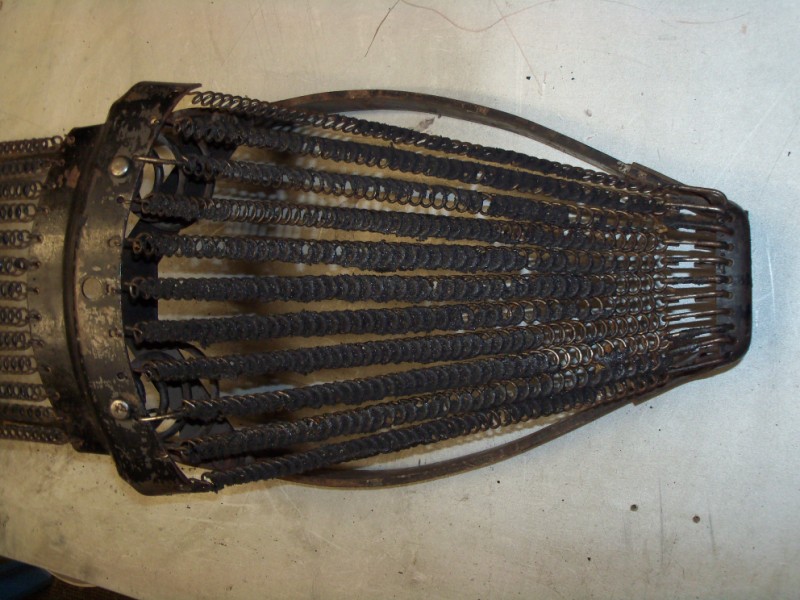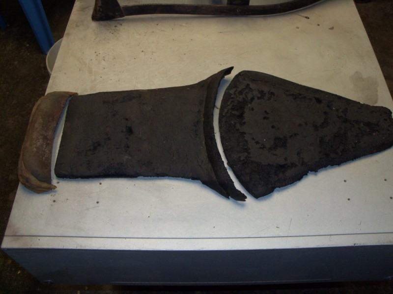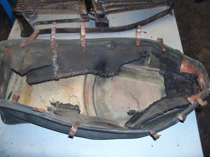 ho tirato via la copertura, e la prima imbottitura rigida si e' distrutta, quella in "gommapiuma" l'ho salvata solo per riprodurla in quanto e' appiccicosissima ed infatti si e' incollata alle molle. sotto a questa c'era un altro strato in gommapiuma gialla che si e' letteralmente polverizzato nel corso degli anni e che ha lasciato solo qualche piccolo residuo visibile.